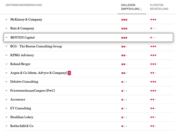 benten capital wird auch im Jahr 2026 von brand eins und Statista als eine der besten Unternehmensberatungen im Bereich Mergers & Acquisitions ausgezeichnet. Mit Platz 3 zählen wir damit wiederholt zu den führenden M&A-Beratungshäusern in Deutschland.