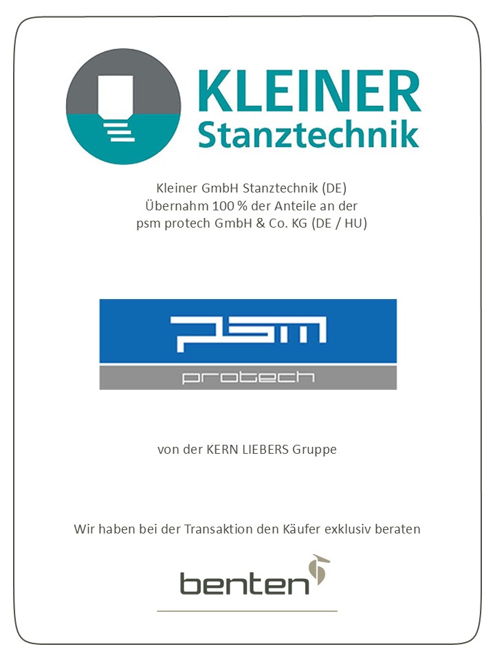 Die Transaktion Der Erwerb sämtlicher Gesellschaftsanteile der psm protech GmbH & Co. KG mit Sitz in Marktschellenberg durch die Kleiner GmbH mit Sitz in Pforzheim wurde zum 1. Januar 2026 im Rahmen eines Share Deals erfolgreich abgeschlossen. Die psm protech gehörte zuvor zur KERN LIEBERS Gruppe. Mit der Akquisition stärkt die Kleiner Gruppe ihre Position […]